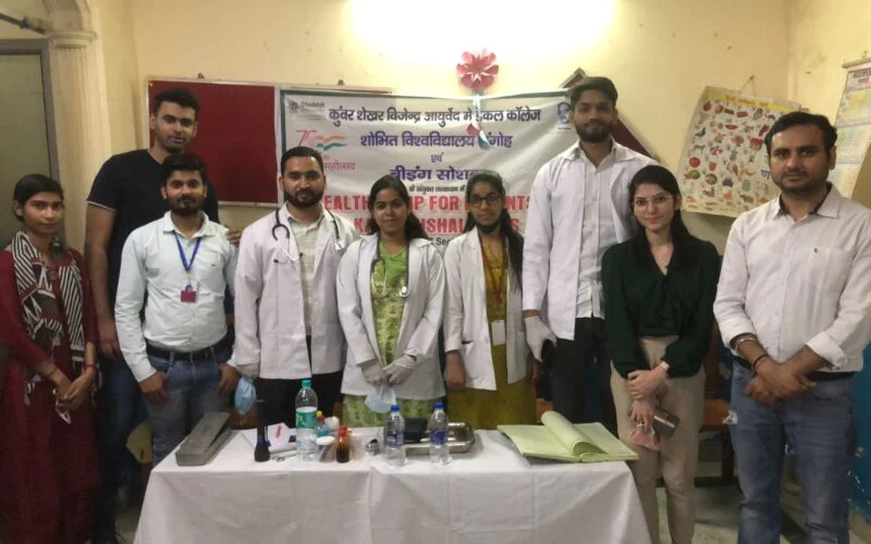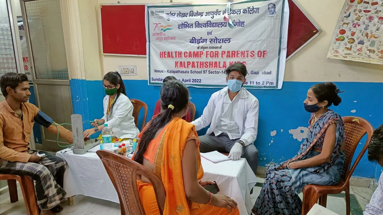चेतन पाठक, 2017 से गाज़ियाबाद में कला पाठशाला के नाम से एक स्लम स्कूल चला रही संस्था “Being social एक नई शुरुआत” हमेशा ही स्कूल में आने वाले बच्चों के स्वास्थ्य के प्रति उनको जागरूक करती रहती है टूथपेस्ट , साबुन इत्यादि देकर बच्चो को कोरोना जैसी महामारी में स्वास्थ के प्रति सजग रखा जा सके ऐसा प्रयास इस संस्था का हमेशा ही रहता है , लेकिन इस बार कला पाठशाला में पढ़ने वाले बच्चों के माता पिता के लिए ये हेल्थ चेकअप कैंप का आयोजन “कुंवर शेख विजेंद्र आयुर्वेदिक मेडिकल कॉलेज” की साथ मिलाकर किया गया है ।