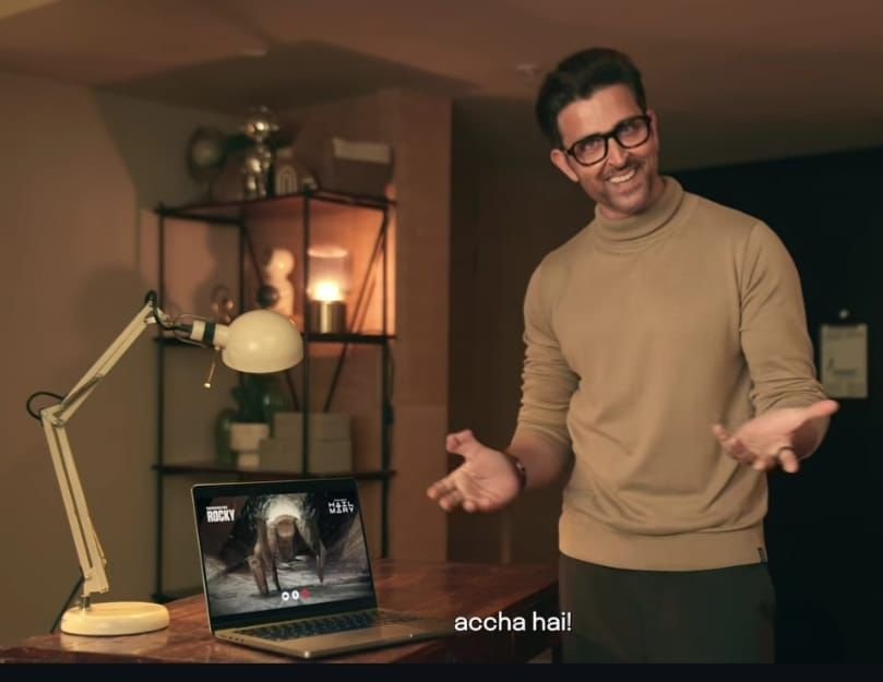 वीडियो में दिखाया गया है कि Project Hail Mary का एलियन Rocky, ऋतिक रोशन से उनका आइकॉनिक डांस स्टेप “एक पल का जीना” सीख रहा है।