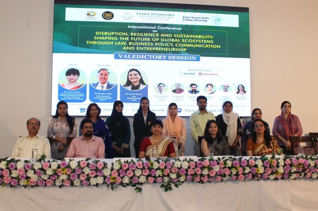 अंशुल त्यागी, दिल्ली मेट्रोपोलिटन एजुकेशन (DME) के प्रबंधन विभाग द्वारा 8–9 अप्रैल 2026 को आयोजित दो दिवसीय अंतर्राष्ट्रीय सम्मेलन ने शिक्षा, उद्योग और नीति जगत के बीच एक सशक्त संवाद का मंच तैयार किया। “व्यवधान, लचीलापन और स्थिरता: कानून, व्यवसाय नीति, संचार और उद्यमिता के माध्यम से वैश्विक पारिस्थितिक तंत्र का भविष्य आकार देना” विषय पर आधारित यह सम्मेलन अपने उद्देश्य में पूरी तरह सफल रहा।